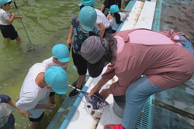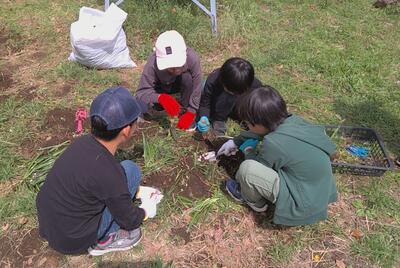 学校応援団のビオトープサポーター計6人に手伝っていただきました。