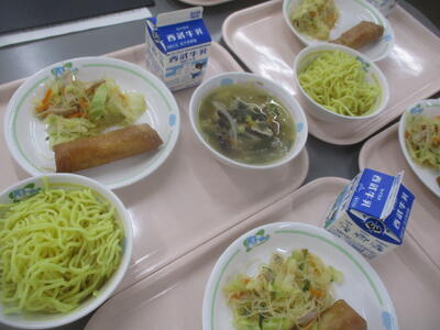 ラーメン?「タンメンですよ、春雨サラダもおいしいですよ!」と子どもたちが教えてくれました。