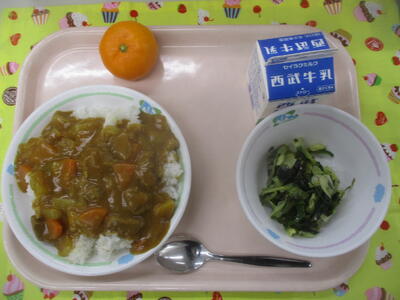 ~今日の献立~ カレーライス 牛乳 かいそうサラダ みかん